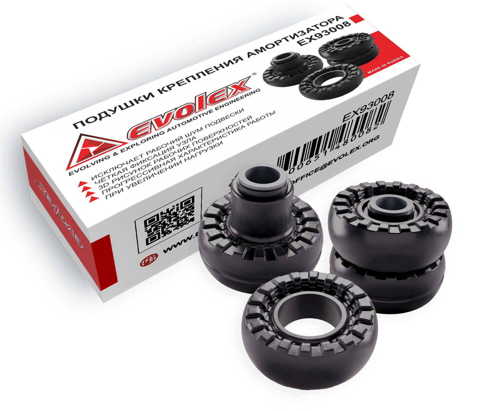 Подушки крепления амортизаторов Evolex EX93008 (Комплект 2шт.) - известные автомобилистам также под названием бублики, представляют собой важную деталь подвески автомобиля. Их роль заключается в гашении колебаний и вибраций, возникающих при движении транспортного средства по неровной дороге или бездорожью.