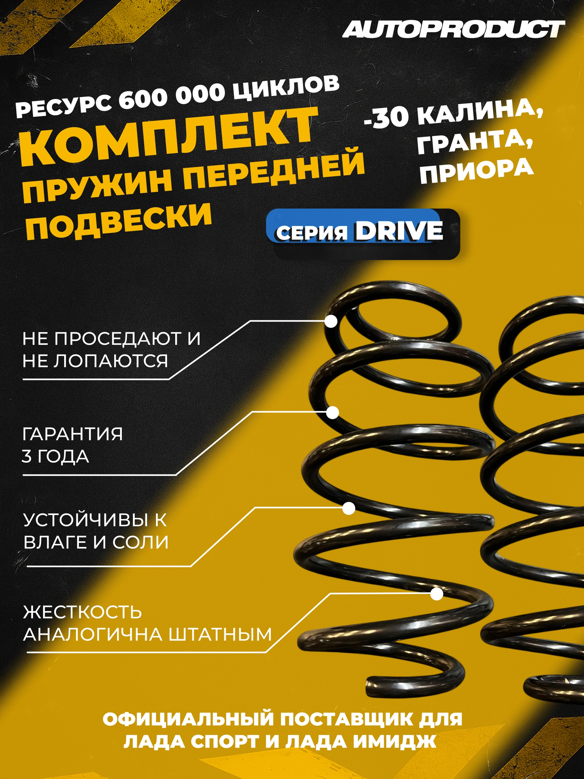 Сверхпрочные заниженные пружины -30 для LADA Kalina/Granta/Priora/Datsun(серия DRIVE)