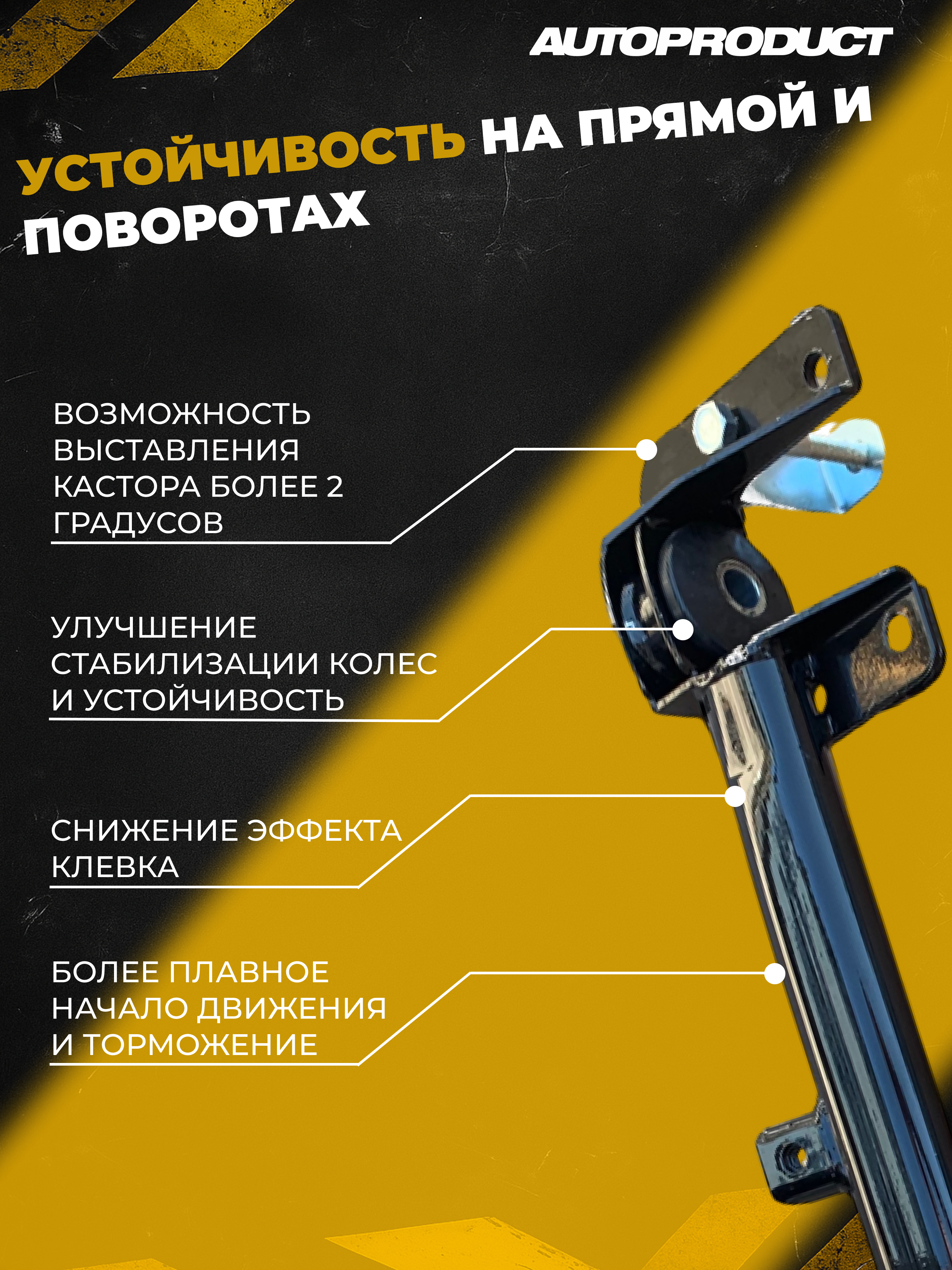 Поперечина позволяет увеличить угол кастора более 2 градусов или выровнять его на каждом колесе. Это улучшает устойчивость как на прямых, так и в поворотах, помогает рулю быстрее возвращаться в ноль после маневров и делает управление на скорости легче. Машина слушается лучше и не требует держать руль изо всех сил.