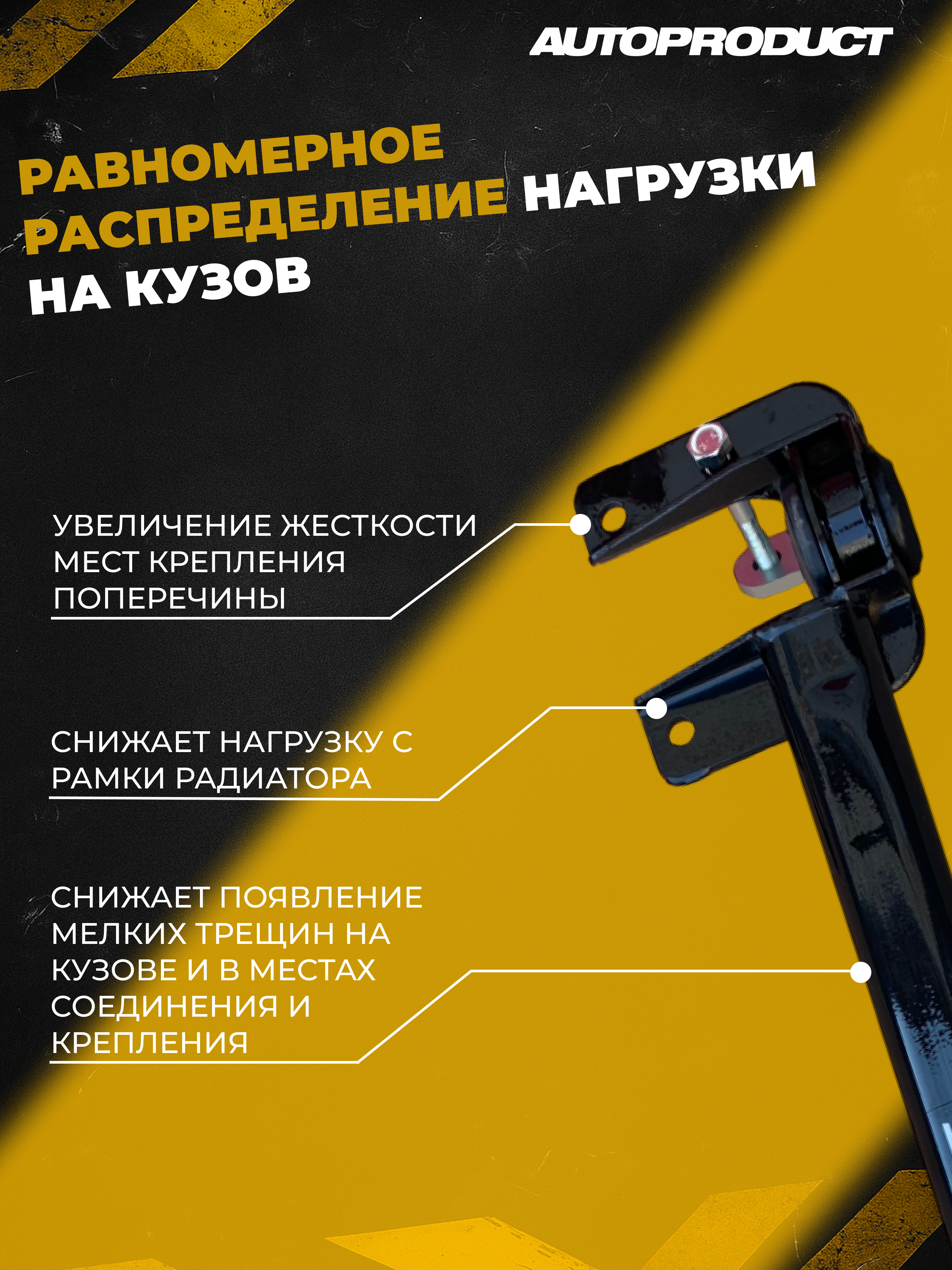Повышается жёсткость кузова в месте установки и нагрузка с него перераспределяется на подвеску. Устраняются перемещения элементов кузова и рамки радиатора. Снизилась парусность кузова. Машина едет увереннее, предсказуемо заходит в повороты. Управлять становится проще и приятнее.