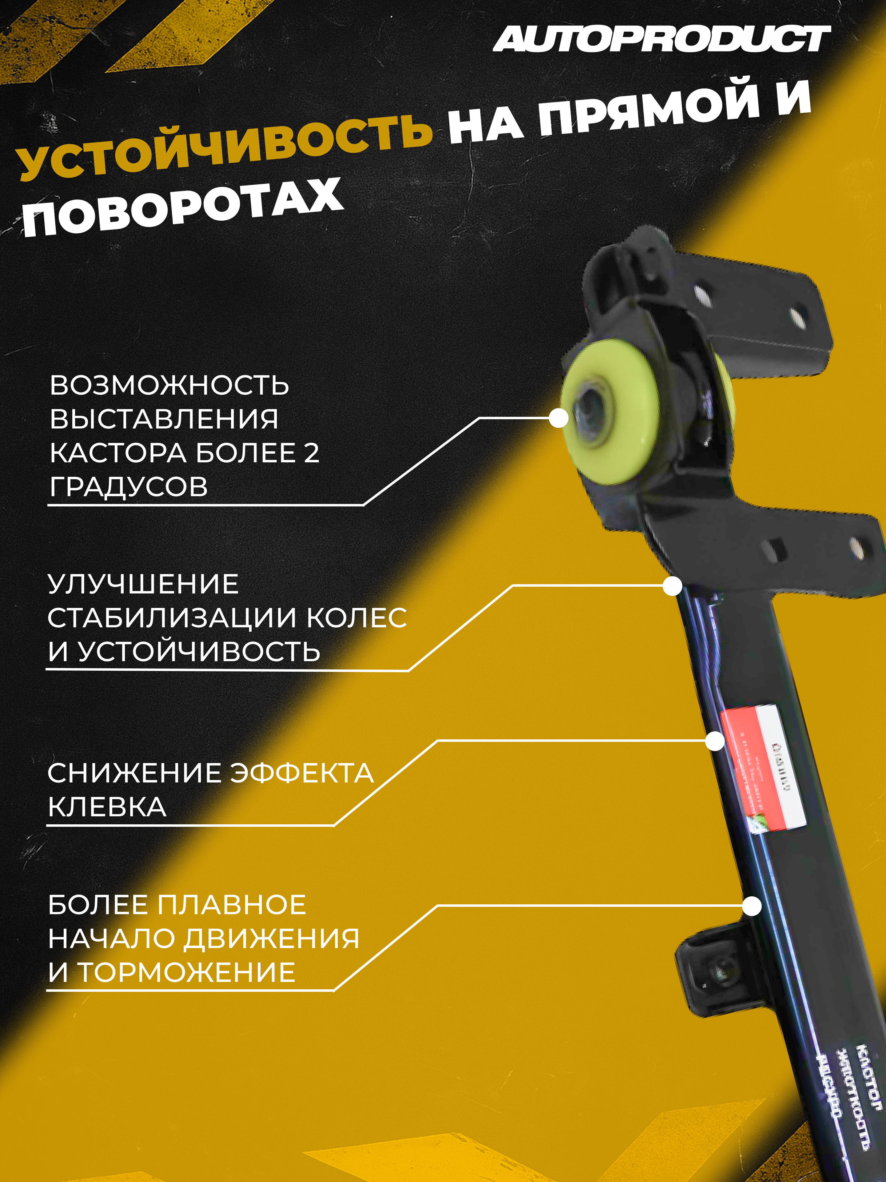 Поперечина позволяет увеличить угол кастора более 2 градусов или выровнять его на каждом колесе. Это улучшает устойчивость как на прямых, так и в поворотах, помогает рулю быстрее возвращаться в ноль после маневров и делает управление на скорости легче. Машина слушается лучше и не требует держать руль изо всех сил.