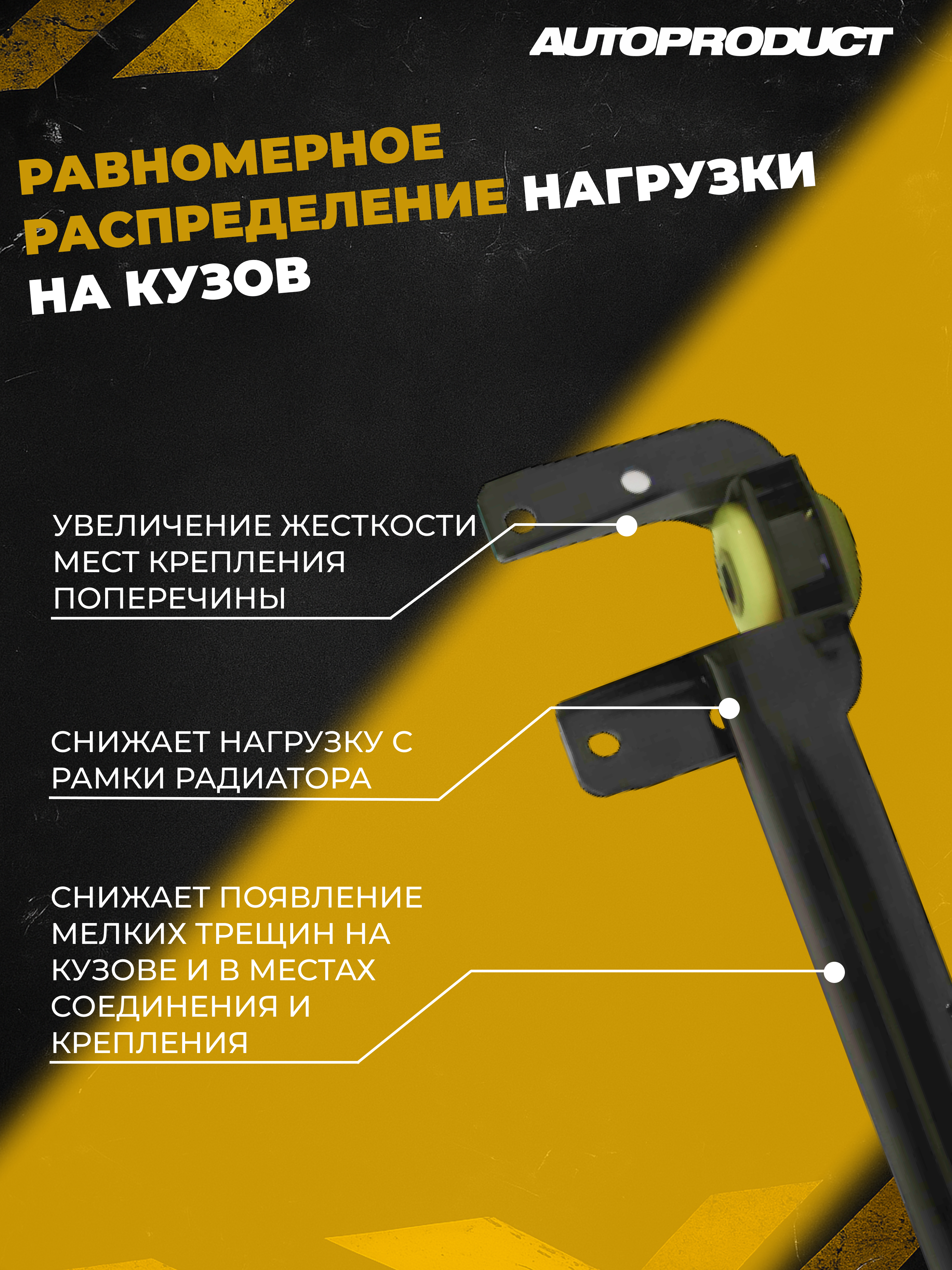 Поперечина ставится прямо в штатные места. Кузов в местах крепления становится жестче, подвеска работает правильнее, нагрузки распределяются равномерно. Машина меньше гуляет на неровностях и четко реагирует на руль. Управление становится точным, а кузовные элементы служат дольше.