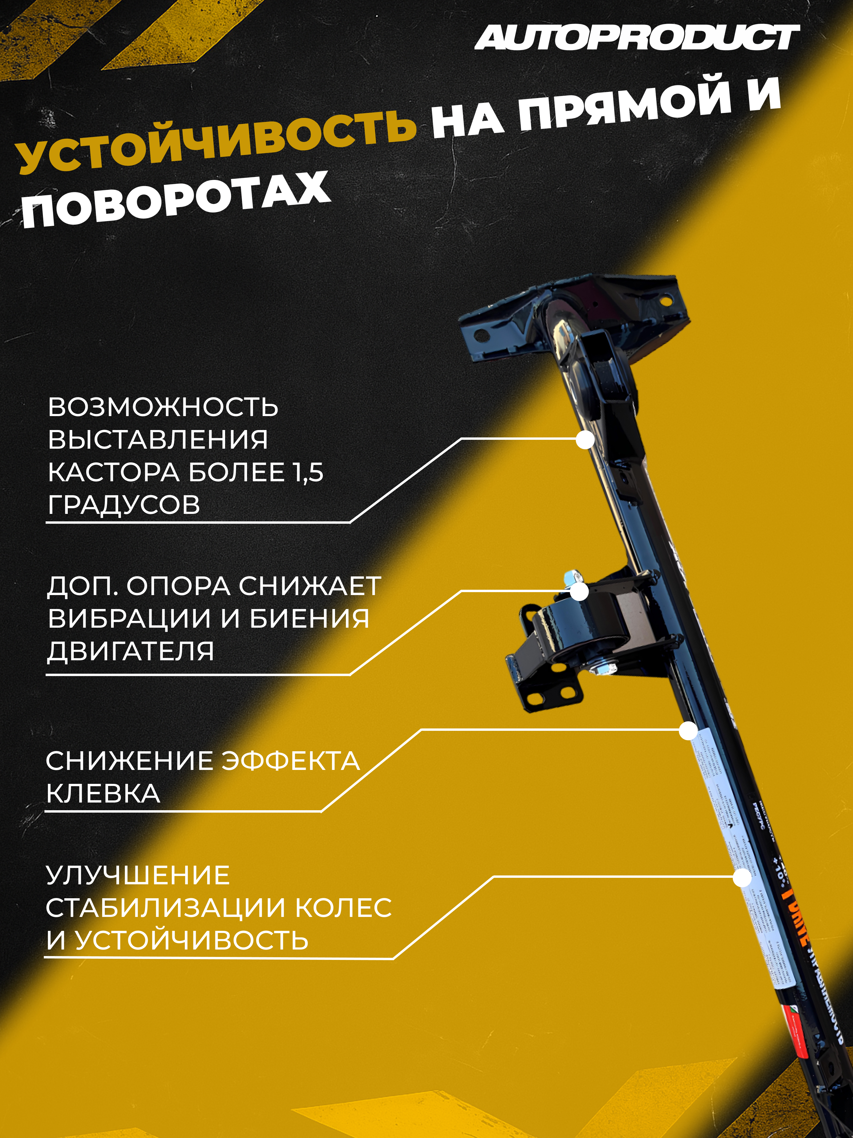 Поперечина позволяет увеличить угол кастора более 1,5 градусов или выровнять его на каждом колесе. Это улучшает устойчивость как на прямых, так и в поворотах, помогает рулю быстрее возвращаться в ноль после маневров и делает управление на скорости легче. Машина слушается лучше и не требует держать руль изо всех сил.