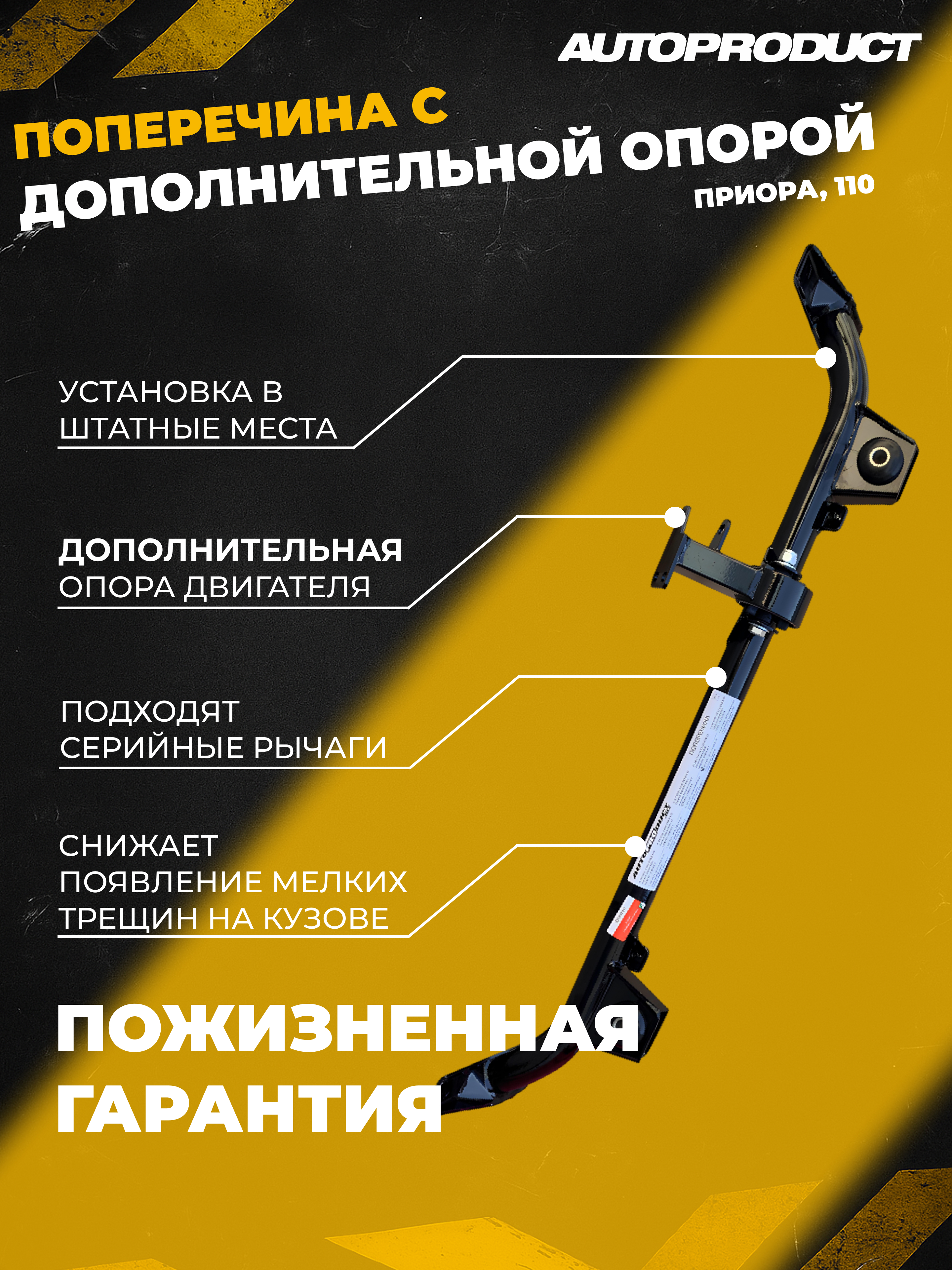 Поперечина снижает колебания и вибрации двигателя, перераспределяя нагрузку со штатных опор за счёт использования дополнительной опоры, тем самым продлевая их ресурс. Улучшается управляемость и включение передач.